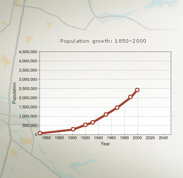 By 1940 the Valley's population topped one million people. Then, between 1945 and 1950, the post World War II baby boom caused Oregon's population to increase faster than any other period before or since. In 1950 there were 400,000 private cars in the Valley and by 1969 that number had doubled to more than 800,000. The Valley began to experience growing pains. There was often a shortage of housing, commercial services and roads.