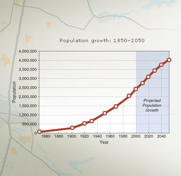 In the early 1990s the Environmental Protection Agency formed the Pacific Northwest Ecosystem Research Consortium (PNW-ERC). The principal aim of this group was to offer scientific analyses to help both policymakers and local citizens make better decisions about land and water use in the region. This consortium quickly recognized that the 'driver' of environmental change in the basin in the next 50 years was the rapidly growing population. They wondered, "What might the Valley look like in 50 years?"